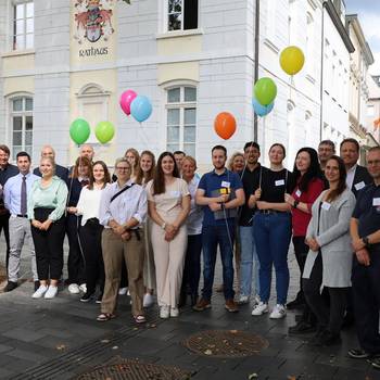 Ausbildung in Königswinter: feiernde Absolventinnen und Absolventen begrüßten gemeinsam mit Bürgermeister Lutz Wagner den neuen Ausbildungsjahrgang