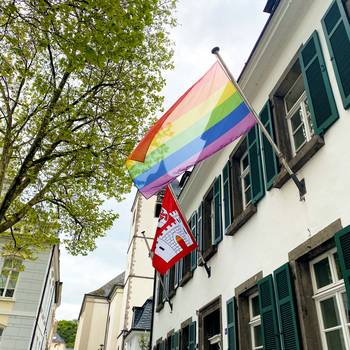 Die Regenbogenflagge wird auf Beschluss des Rates seit 2021 jährlich am Haus Bachem und dem Rathaus Königswinter-Oberpleis gehisst und setzt so auch ein Zeichen für ein buntes und tolerantes Königswinter.