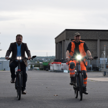 Bürgermeister Lutz Wagner konnte sich über den Stand der angelaufenen Aktion „Jobwärts“ vor Ort informieren. Bei der Gelegenheit lieh er sich selber ein Pedelec aus und wird in den kommenden Tagen seine Verwaltungstermine mit dem Rad wahrnehmen. „Wir wollen unseren Mitarbeitenden die Alternative zum Auto zusätzlich schmackhaft machen.“ So habe man in den letzten Monaten die Abstellmöglichkeiten an den Verwaltungsstandorten verbessert und setze auf die Nutzung von Diensträdern, darunter auch vier E-Bikes, für die Wahrnehmung dienstlicher Aufgaben und Termine.