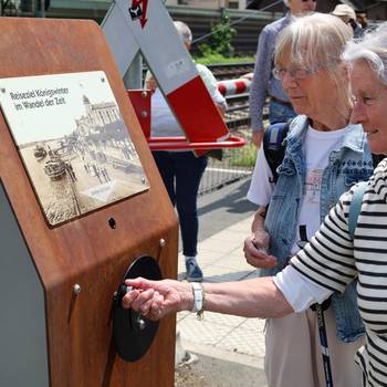 Das Altstadtmanagement Königswinter versucht nun mit einem Hörmodul am Bahnübergang Drachenfelsstraße aus der Situation das Beste zu machen und den wartenden Menschen informativ die Zeit zu vertreiben. Direkt neben der Schranke steht jetzt eine Stele aus Cortenstahl, die nach dem Drehen an einem Rad die 200jährigeTourismusgeschichte von Königswinter erzählt. Wahlweise auch in englischer Sprache. Eine circa einminütige Erzählung beginnt bei Lord Byron und der Rheinromantik, berichtet über die Zeiten der Grandhotels, der goldenen fünfziger und sechziger Jahre bis zu der Neudefinition des Tourismus in der heutigen Zeit.