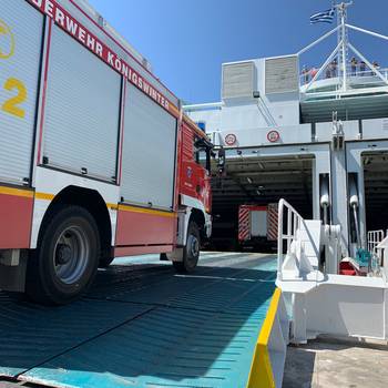 Die Wehrleute der gemeinsamen Waldbrandeinheit sind mit der Fähre von Italien in Richtung Patras in Griechenland übergesetzt. Sie ist am Dienstag, den 10. August 2021 mit dem Schiff im Hafen von Igoumenitsa / Griechenland eingetroffen. Danach ging es auf dem Landweg weiter nach Patras. Seit Mittwoch, den 11. August 2021 befindet sich die Waldbrandeinheit im Einsatz vor Ort.