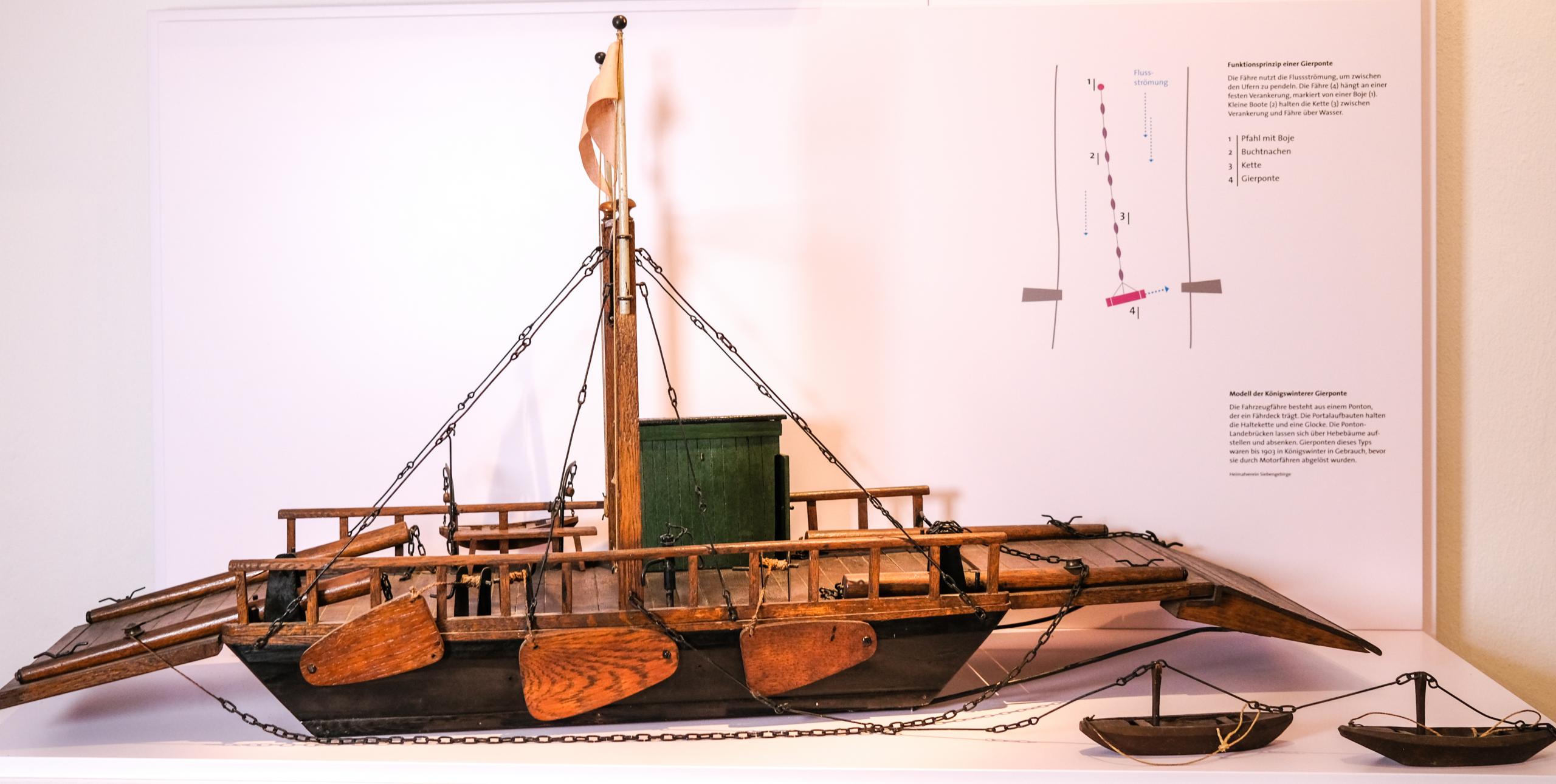 Verlauf der Rundwanderung: Einführung im Siebengebirgsmuseum; ca. 6 km ebener, meist asphaltierter Weg am Rhein entlang; zwei Fährfahrten über den Rhein.